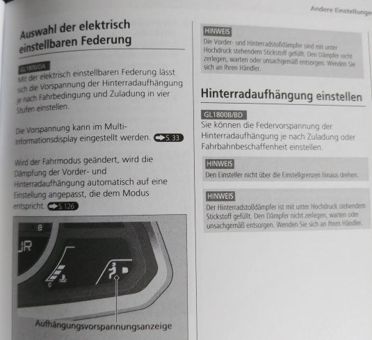 Hat die Einstellung der Fahrwerkshöhe (elektronisch, alleine, Gepäck, zu Zweit) auch einen Einfluss auf die Dämpfung, sprich wird die Dämpfung härter oder wird nur der Federweg mehr, da höhergestellt?