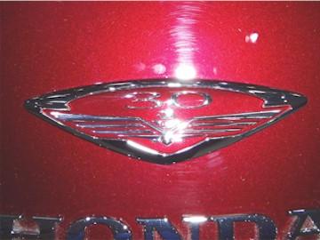 30-Jahre-Embleme und verchromte Seitenverkleidungen. die Gold Wing ist